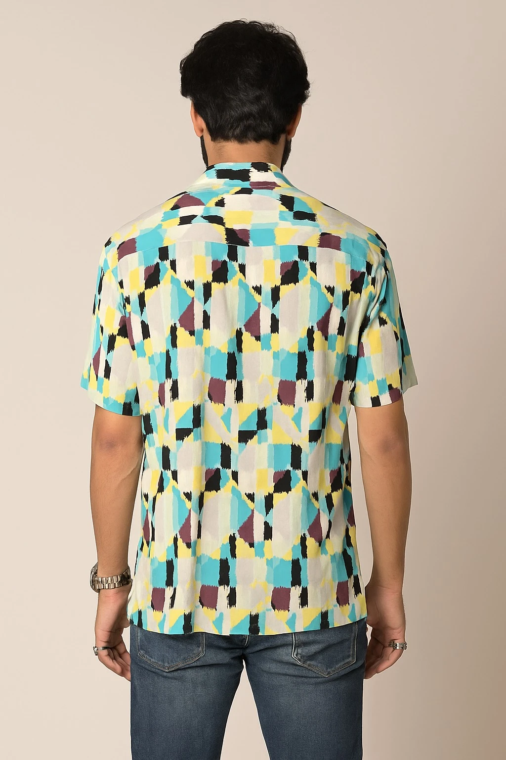 Elevate your casual wardrobe with this multi abstract print shirt, perfect for any relaxed occasion. Crafted from premium viscose fabric, this men's shirt features a stylish regular collar and convenient button closure. The boxy fit ensures comfort and a modern silhouette, while the half sleeves add a touch of laid-back elegance. Ideal for those seeking a trendy yet timeless look, this shirt effortlessly combines style and comfort. Whether you're heading to a beach party or a casual outing, this abstract print shirt is your go-to choice for a fashionable statement. Embrace the latest fashion trends with confidence.