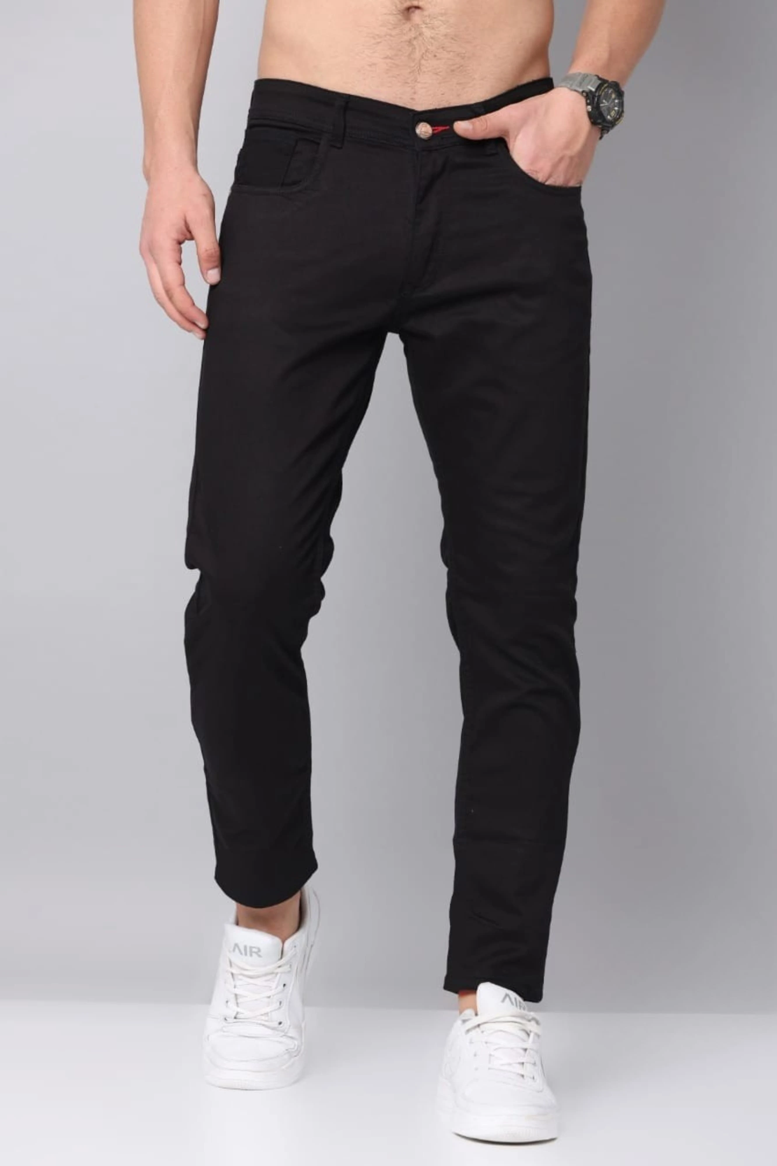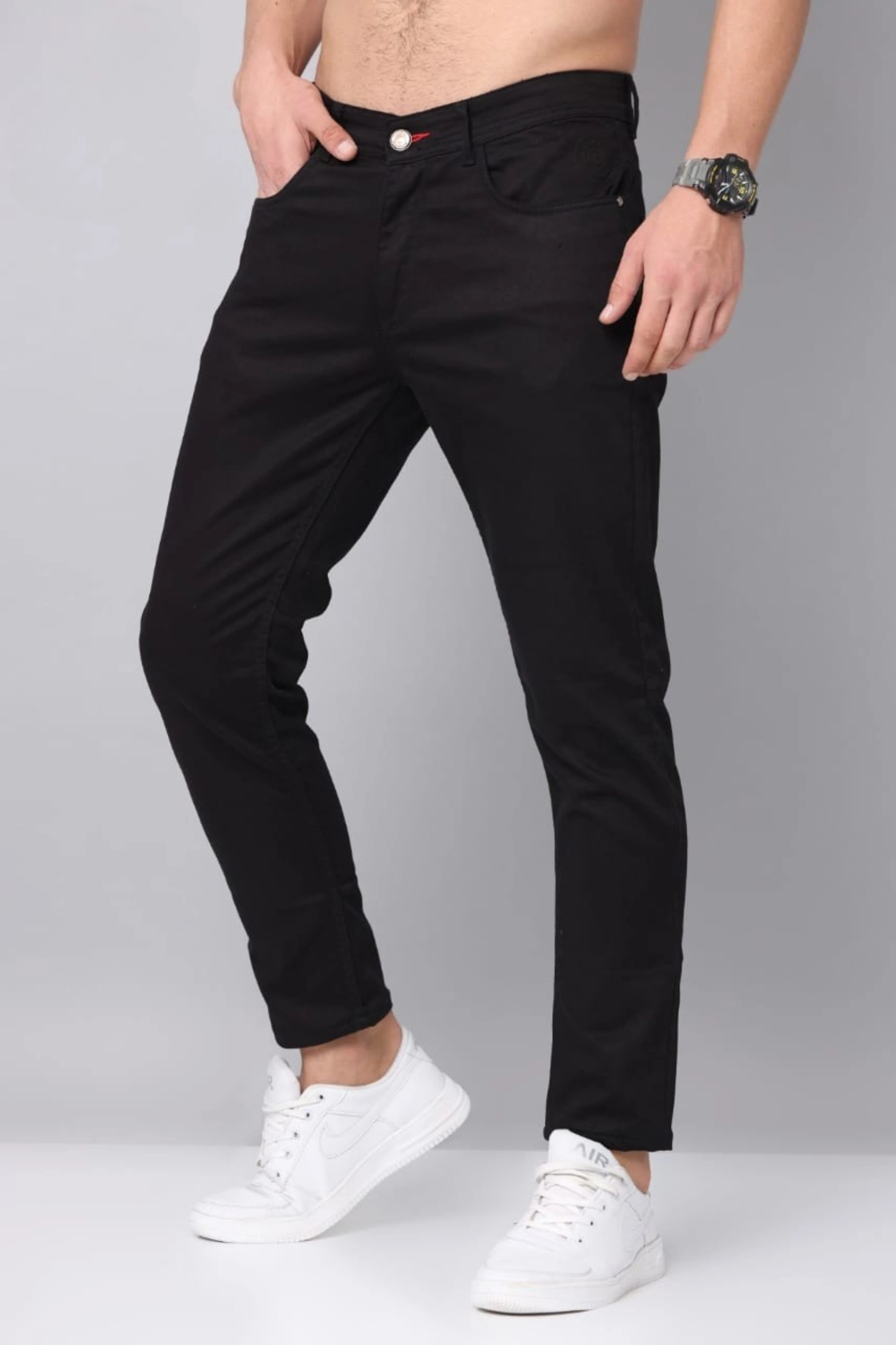 Discover the perfect blend of style and comfort with our black mid-rise denim jeans. Crafted from high-quality cotton, these jeans offer a sleek silhouette with a button and zip closure for a secure fit. making them ideal for casual outings. Designed for versatility, these plain woven jeans are a wardrobe essential, effortlessly pairing with any top for a polished look. Whether you're heading out for a casual day or a night out, these jeans provide the perfect balance of comfort and style. Elevate your fashion game with these must-have denim jeans, designed to keep you looking sharp and feeling great all day long.mid rise black denim with five pocket styling.