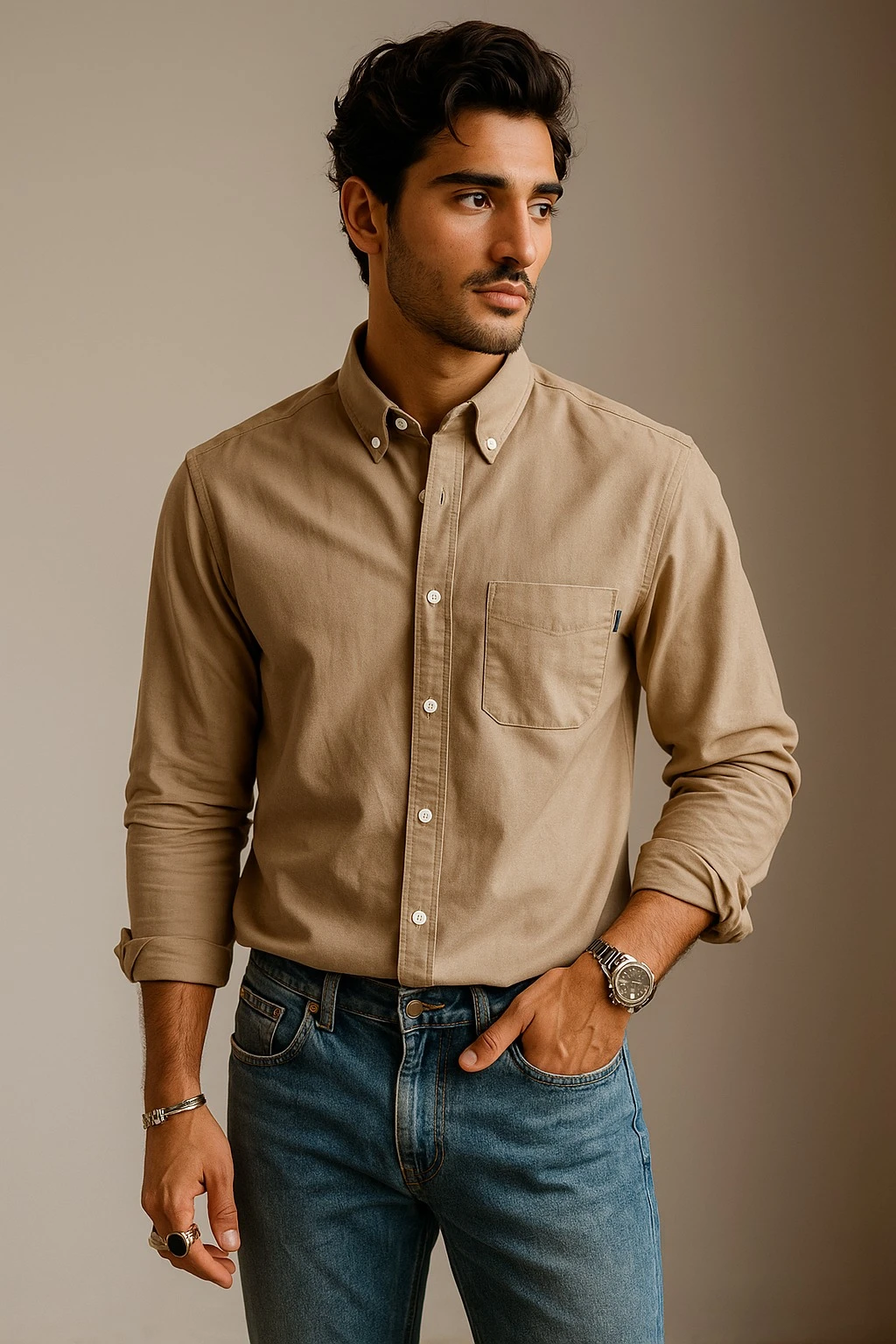 Discover the epitome of classic style with our Beige Button-Down Oxford Shirt. Crafted from premium cotton, this formal shirt features a Button-down collar and full sleeves, offering a regular fit that ensures comfort and sophistication. The woven fabric and plain design make it a versatile addition to any wardrobe, perfect for business meetings or elegant gatherings. Elevate your formal attire with this timeless piece, designed for those who appreciate quality and style. Shop now to experience the perfect blend of tradition and modernity.