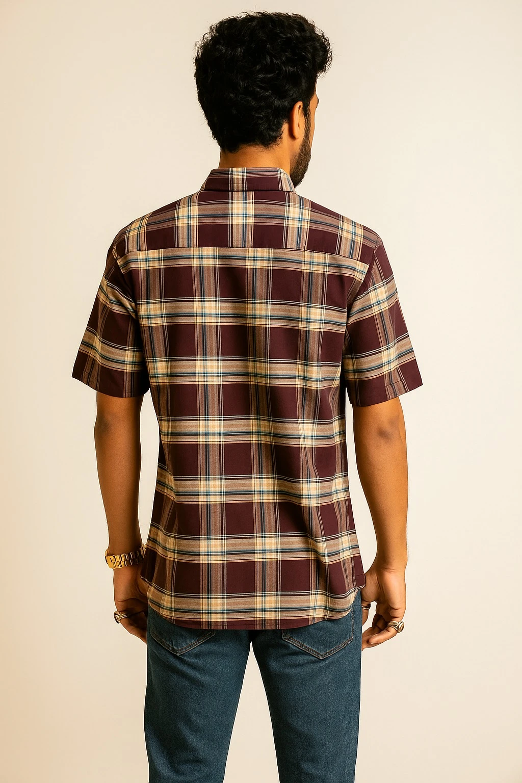 Discover the ultimate in casual style with our maroon Checked Regular Fit Cotton Shirt. Crafted from premium cotton, this half-sleeve shirt features a classic spread collar and convenient button closure, ensuring both comfort and style. The regular fit design offers a relaxed silhouette, perfect for everyday wear. Ideal for those seeking a versatile addition to their wardrobe, this checked shirt pairs effortlessly with jeans or chinos for a laid-back look. Elevate your casual fashion game with this must-have piece.