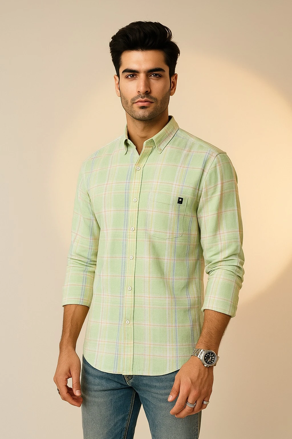 Introducing our stylish Men's Shirt in, a perfect blend of comfort and fashion. Crafted from premium imported cotton, this casual checked shirt features a classic spread collar and a convenient button closure. The Dupplin check pattern adds a touch of sophistication, making it ideal for any casual outing. Designed for a regular fit, this full-sleeve woven shirt ensures you stay comfortable and stylish all day long. Elevate your wardrobe with this versatile teal shirt, perfect for any occasion.