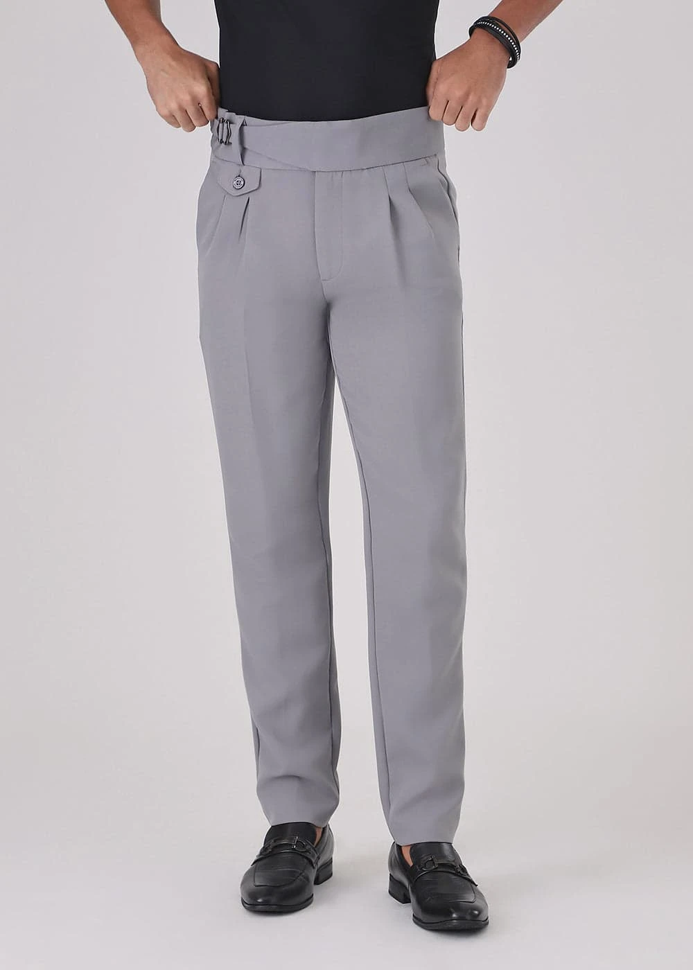 Explore the perfect blend of style and comfort with our regular fit gurkha pant. Crafted for everyday elegance, these trousers feature a classic button and zip closure, ensuring a secure and comfortable fit. The high-quality imported fabric offers breathability and durability, making them ideal for both casual and formal occasions. Pair them effortlessly with your favorite shirts or blazers for a polished look. The neutral gray color adds versatility to your wardrobe, allowing easy coordination with various outfits. Whether you're heading to the office or a weekend outing, these trousers provide a timeless appeal.