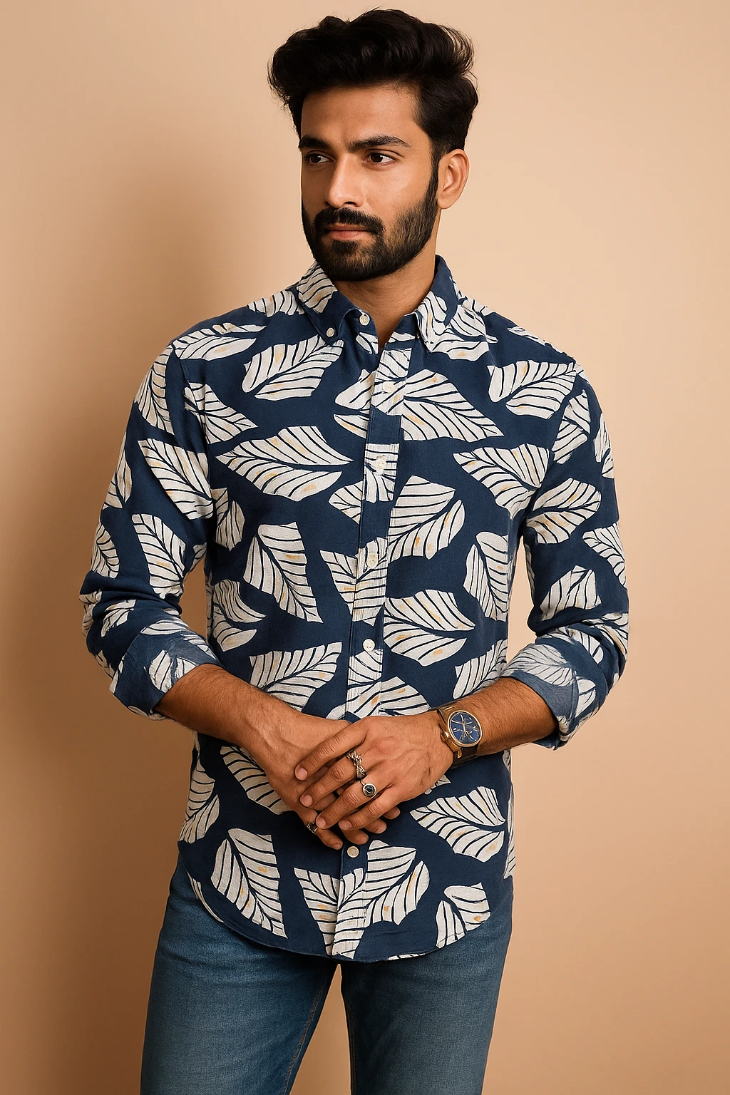 Discover the ultimate in casual elegance with ourĀ leaf floral print shirt. Crafted from premium cotton, this regular fit shirt features a stylish spread collar and convenient button closure. Perfect for any casual occasion, its full sleeves and woven design offer both comfort and sophistication. Elevate your wardrobe with this unique floral print shirt, ideal for those who appreciate a blend of modern style and classic charm. Whether you're heading out for a casual day or a relaxed evening, this shirt ensures you stand out with its distinctive pattern and impeccable fit. Explore effortless style and make a statement with this must-have addition to your collection.