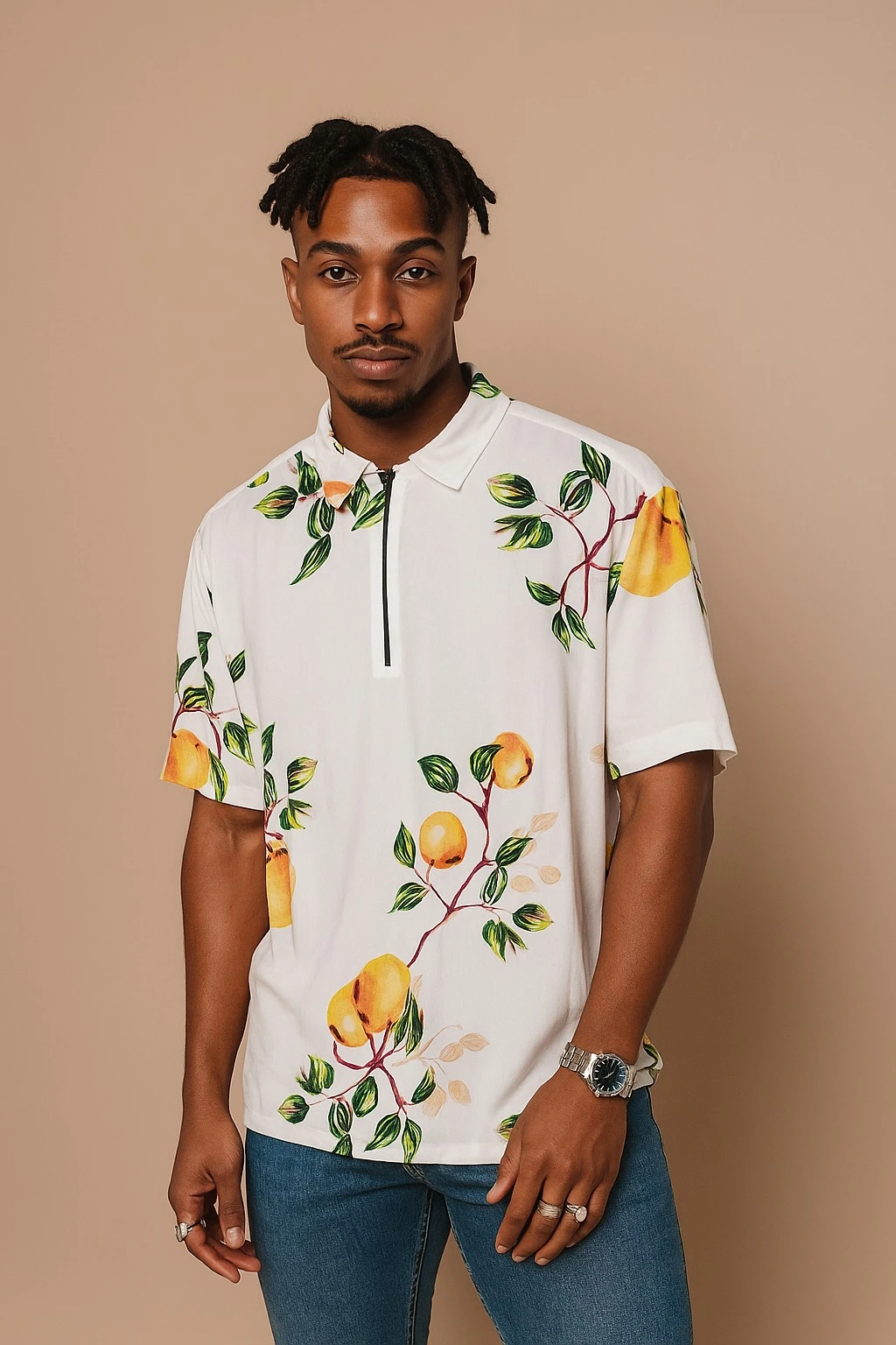 Elevate your wardrobe with our sophisticated leaf floral printed half-sleeve shirt, designed for a distinguished yet modern look. Featuring a bold zipper closure and a regular collar, this shirt combines contemporary style with comfort. Made from viscose fabric, it ensures breathability and ease of wear. The boxy fit flatters all body types, making it perfect for any occasion. Slip into confidence and redefine your style with this essential piece. Shop now for a blend of elegance and modern rebellion!