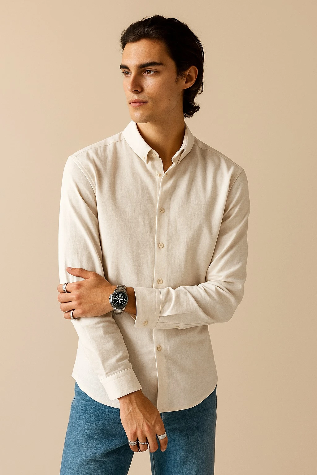 Discover the perfect blend of style and comfort with our Linen blend Plain Shirt. Crafted from premium cotton, this casual full-sleeve shirt features a button down collar and convenient button closure. Designed for a regular fit, it offers a sophisticated yet relaxed look, ideal for any casual occasion. The woven fabric ensures durability and breathability, making it a must-have addition to your wardrobe. Elevate your fashion game with this versatile and timeless piece. Perfect for those who appreciate quality and style in their everyday wear.
