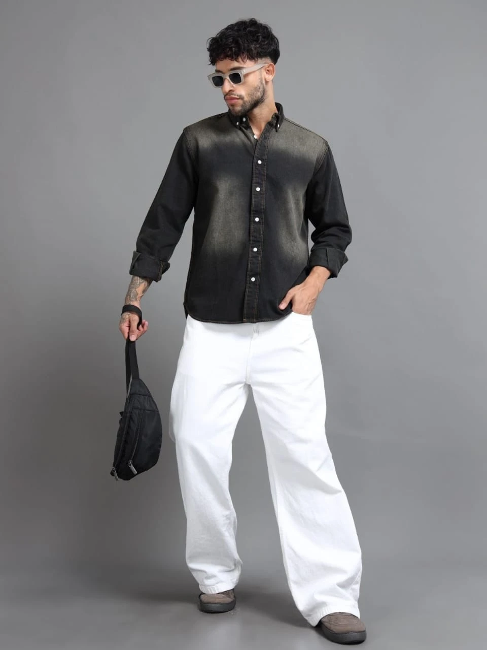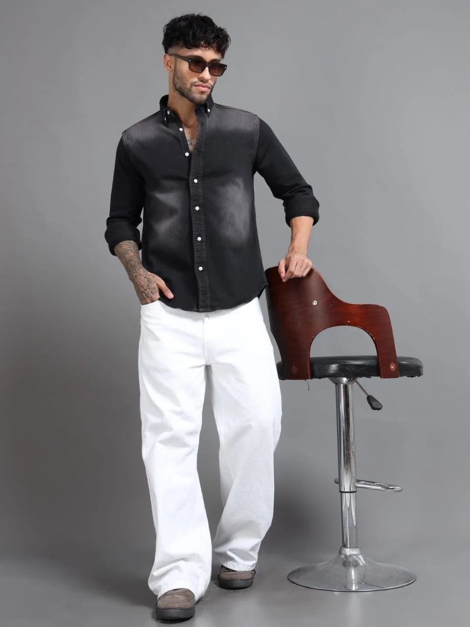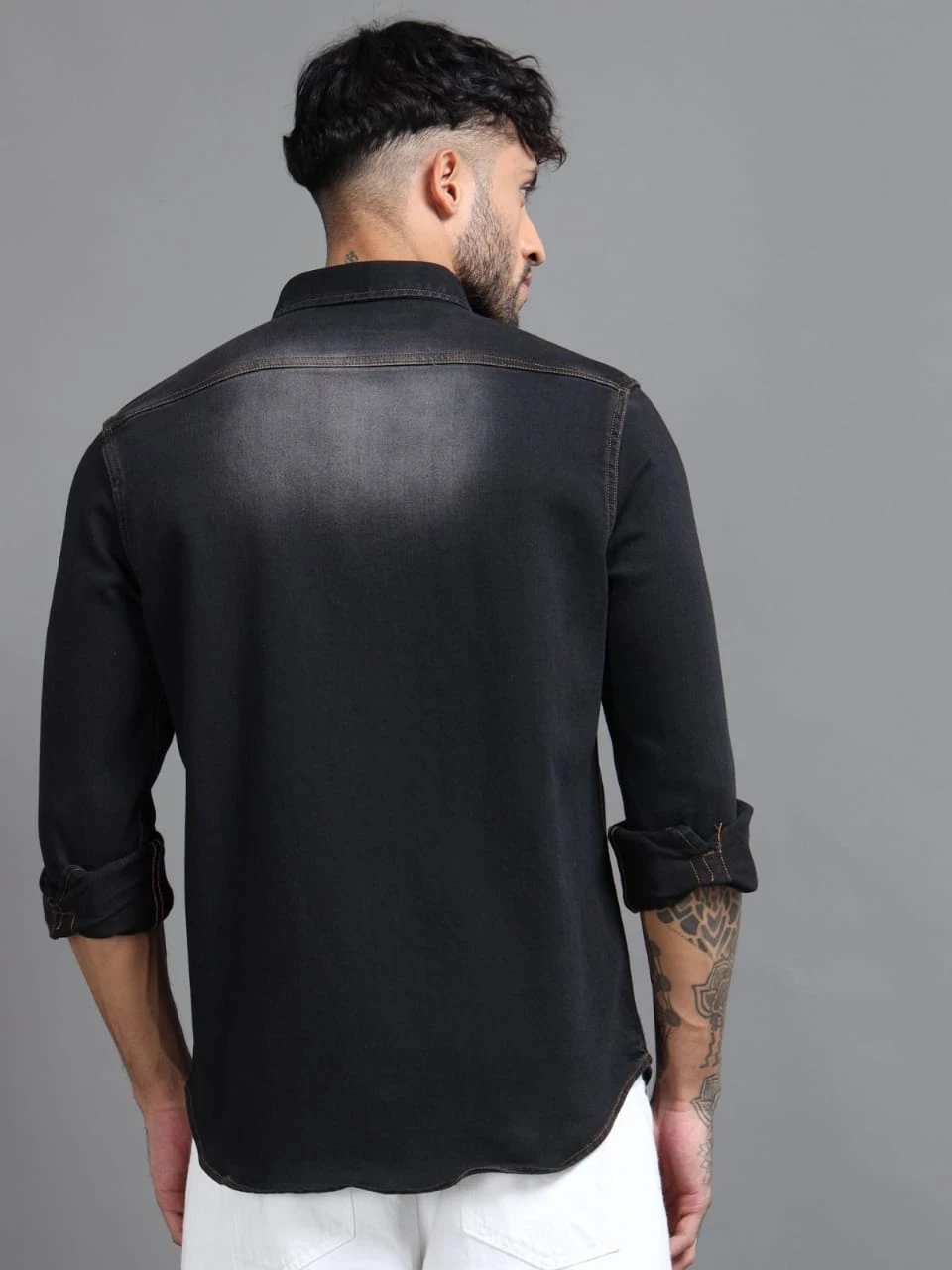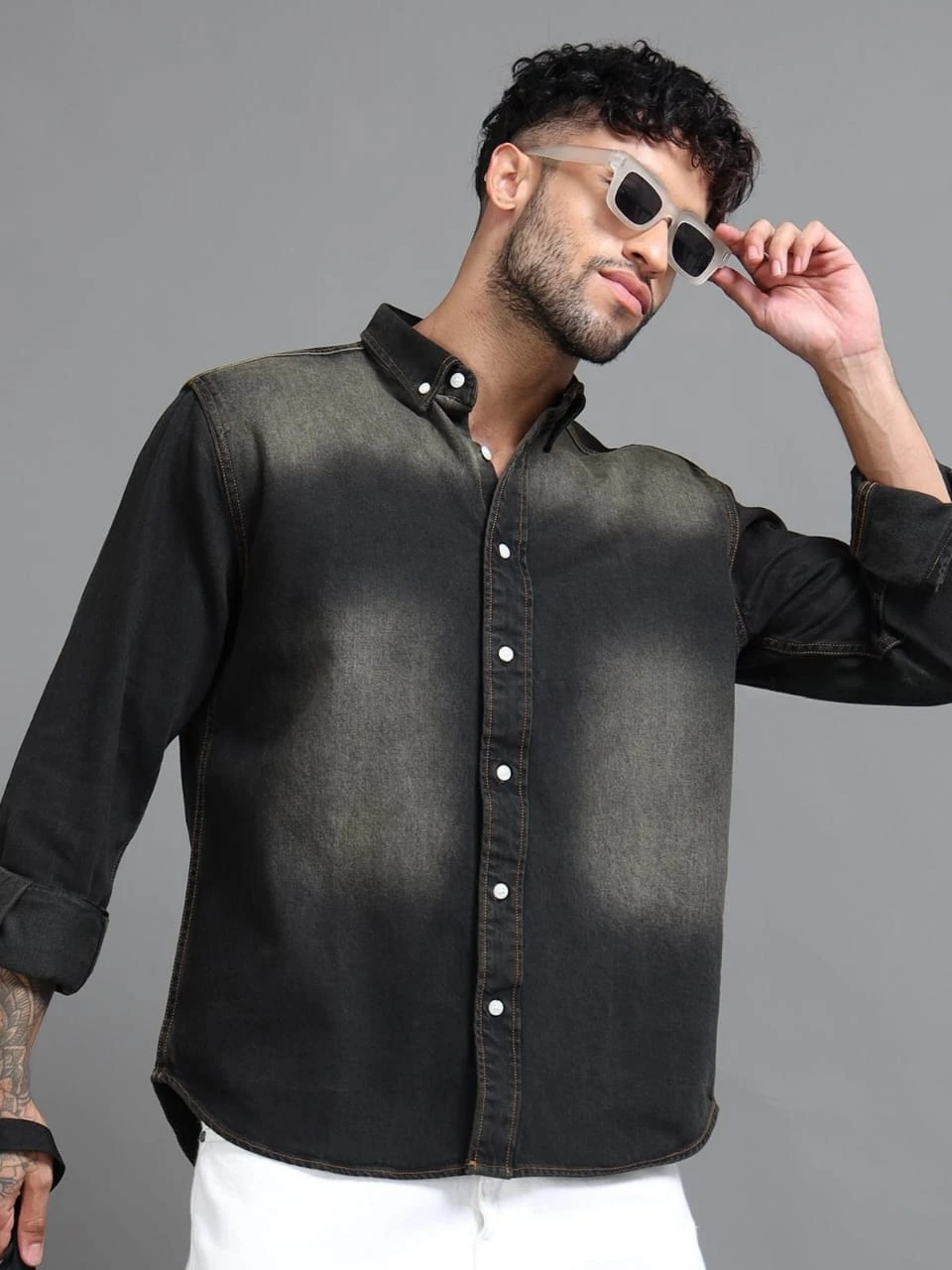 Discover the perfect blend of style and comfort with our Dark Wash Denim Shirt. Crafted from premium cotton, this casual shirt features a regular fit and full sleeves, making it an ideal choice for everyday wear. The button down collar and button closure add a classic touch, while the fog shade enhances its modern appeal. Perfect for any casual occasion, this black shirt is a versatile addition to your wardrobe. Elevate your fashion game with this must-have denim essential.