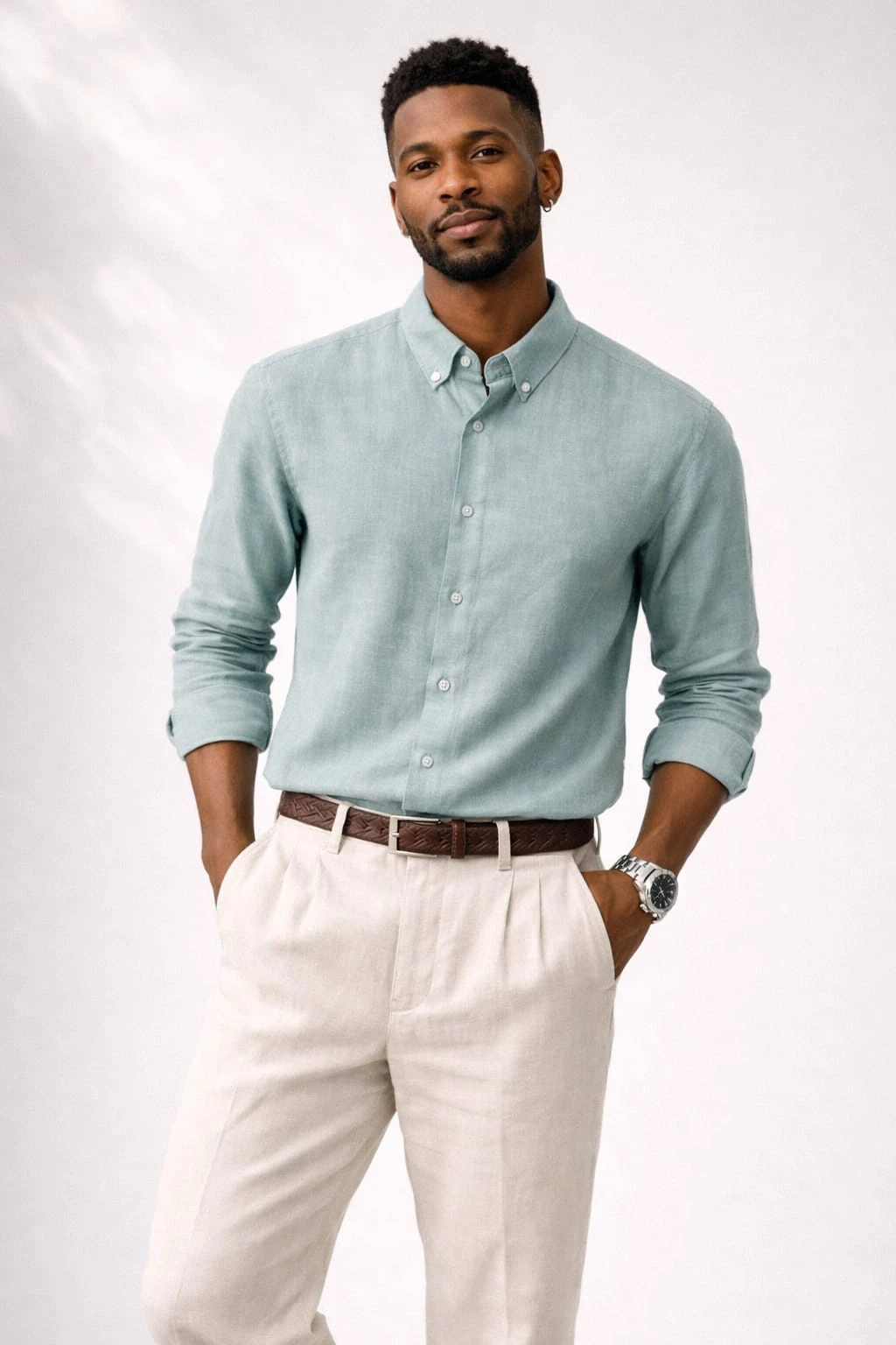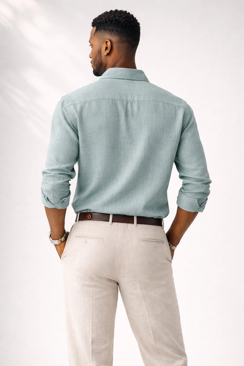 Featuring a classic button-down collar, full-length sleeves with roll-up cuff detailing, and a tailored yet comfortable fit, this piece balances casual ease with polished appeal. The soft, muted tone enhances versatility, making it ideal for both smart-casual outings and relaxed formal occasions. Finished with clean stitching and smooth button closure, this linen shirt is a timeless wardrobe essential for modern men.