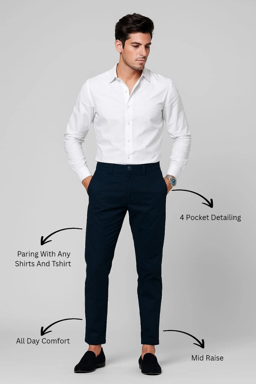 Discover the ultimate in comfort and style with our Regular Fit Plain Trousers, perfect for casual outings or smart-casual events. Crafted from high-quality cotton fabric, these trousers offer durability and a sleek appearance. The button and zip closure ensures a secure fit, while the regular fit design provides all-day comfort. Ideal for travel or everyday wear, these versatile trousers are a wardrobe essential. Pair them with your favorite shirt or blazer for a polished look. Elevate your fashion game with these must-have trousers, designed for those who appreciate both style and functionality. Shop now and experience the perfect blend of comfort and elegance.