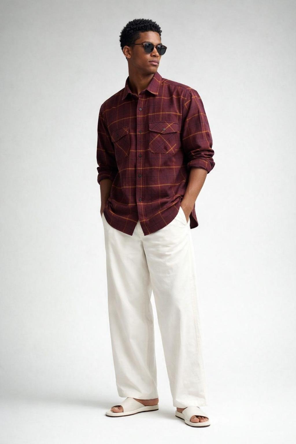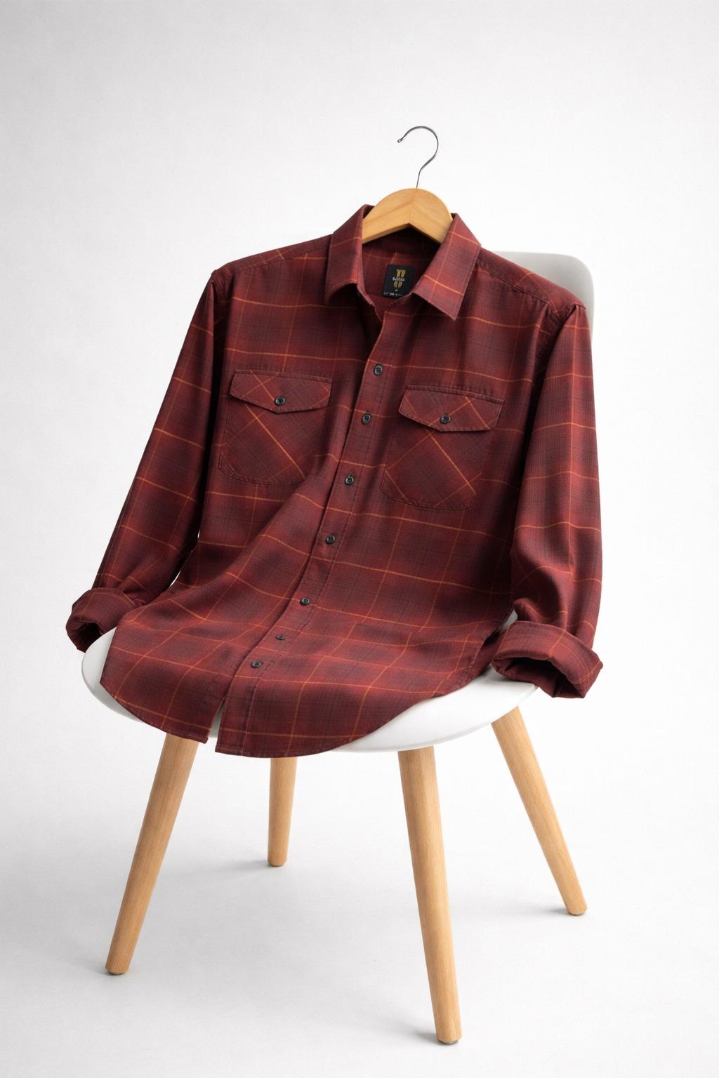 Upgrade your everyday style with this effortlessly cool dual pocket checked shirt, designed for modern comfort and timeless appeal. Crafted in a rich maroon base with subtle mustard windowpane checks, this shirt strikes the perfect balance between bold and versatile.