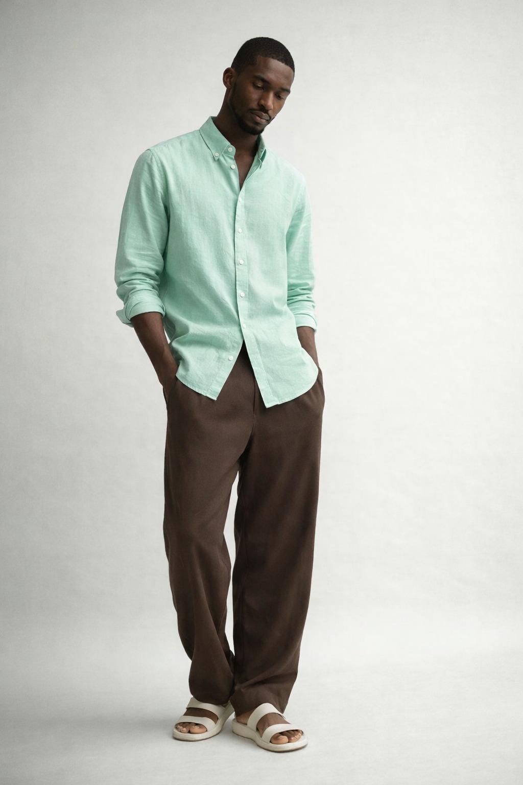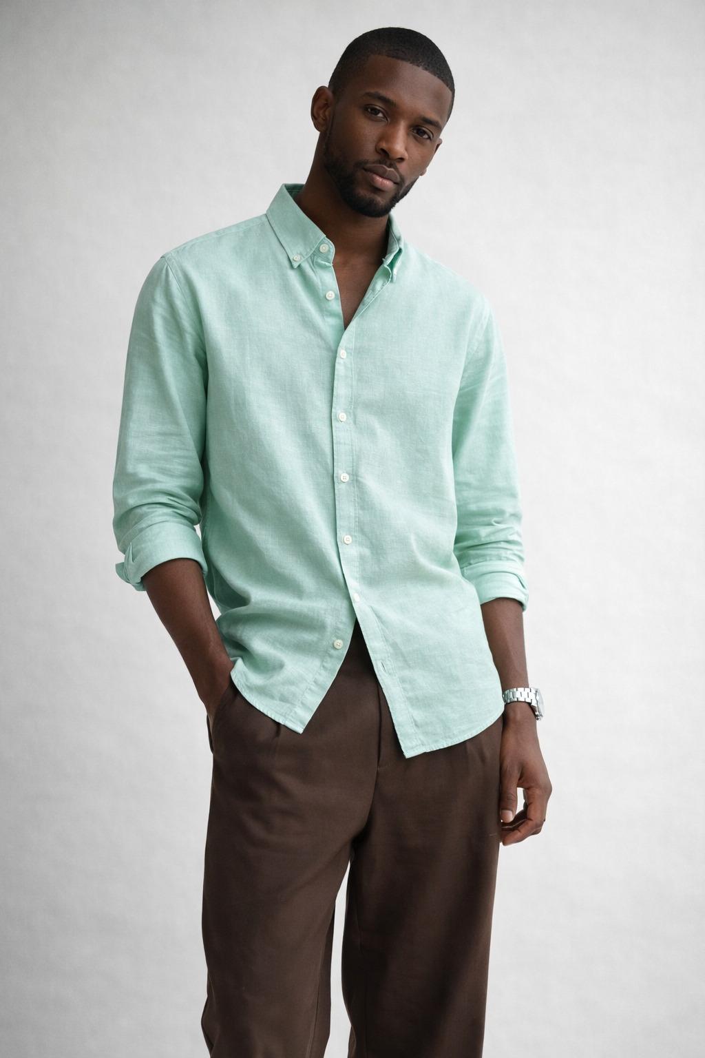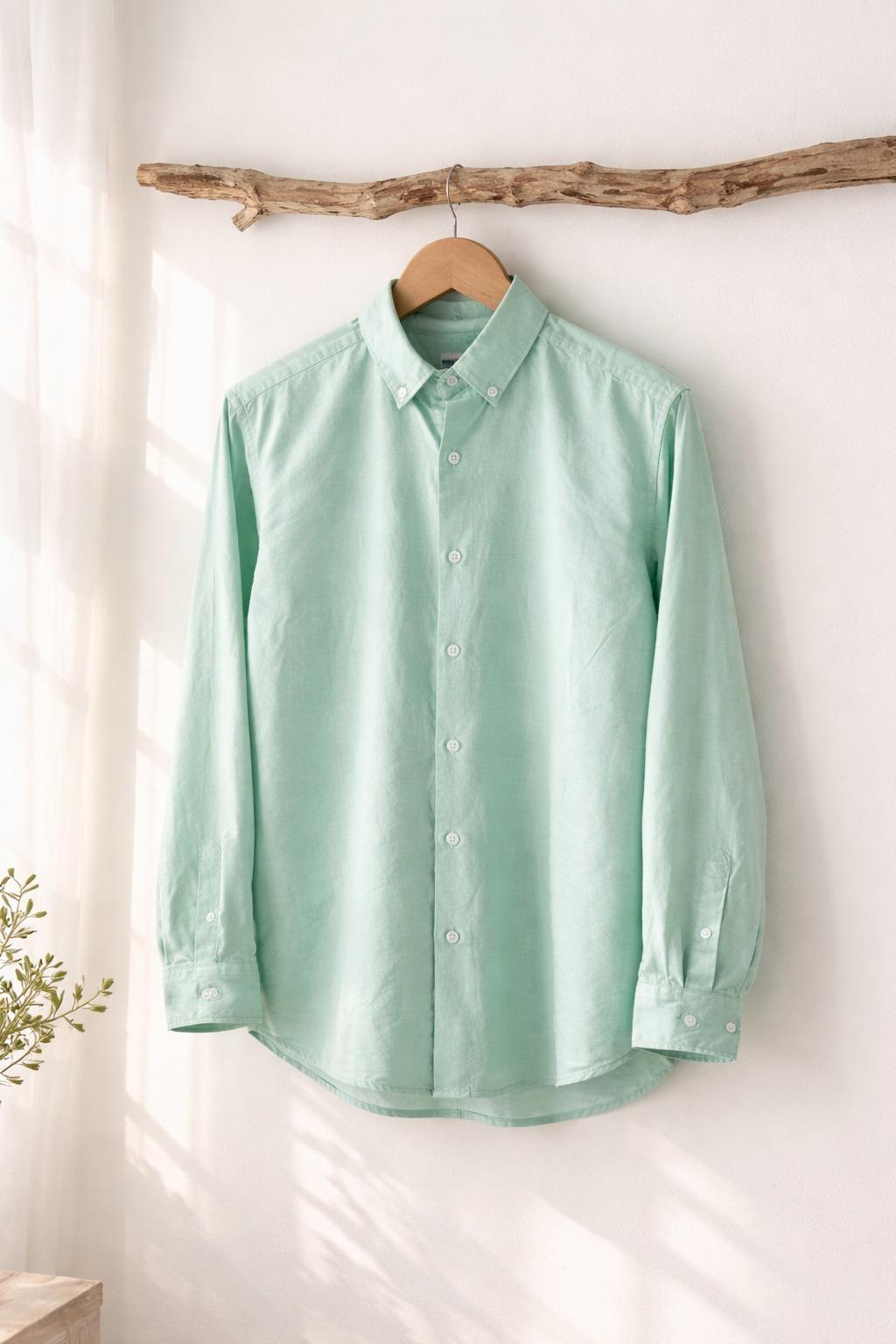 Mint Green Linen-Cotton Shirt – Button Down